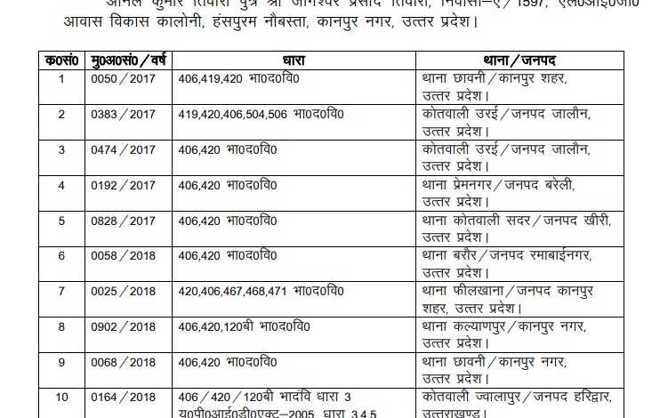 अनिल कुमार तिवारी पुत्र स्व. जागेश्वर तिवारी निवासी ए-1597, आवास विकास कॉलोनी, हंसपुर, नौबस्ता, कानपुर (उ.प्र.) वर्तमान पता दृ टिटवाला, कल्याण, जिला ठाणे, मुम्बई (महाराष्ट्र)