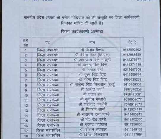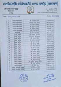 अल्मोड़ा आगामी चुनावों को देखते हुए कांग्रेस ने संगठनात्मक मजबूती की दिशा में बड़ा कदम उठाते हुए अल्मोड़ा जिला कांग्रेस कमेटी की नई कार्यकारिणी का गठन कर दिया है। नई टीम में अनुभव और युवाओं का संतुलन साधने की कोशिश की गई है, जिससे संगठन को जमीनी स्तर पर सक्रिय बनाया जा सके।
