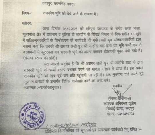 हरिपुरा जलाशय के पास बड़ी कार्रवाई: सरकारी भूमि पर अतिक्रमण, फर्जी स्टाम्प से बेची जा रही थी जमीन!