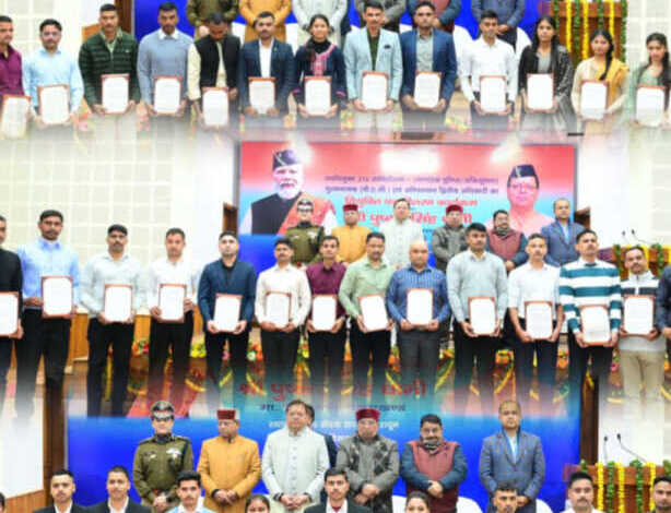 मुख्यमंत्री श्री पुष्कर सिंह धामी ने बुधवार को मुख्यमंत्री कैम्प कार्यालय स्थित मुख्य सेवक सदन में 215 उपनिरीक्षकों को नियुक्ति पत्र प्रदान किये। जिसमें 104 उप-निरीक्षक, 88 गुल्मनायक (पी.ए.सी) एवं 23 अग्निशमन द्वितीय अधिकारी शामिल हैं।