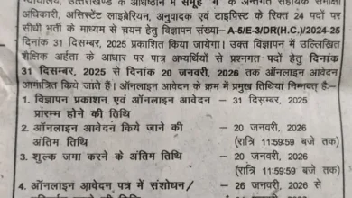 बड़ी खबर: देहरादून में इन पदों के लिए आवेदन आमंत्रित