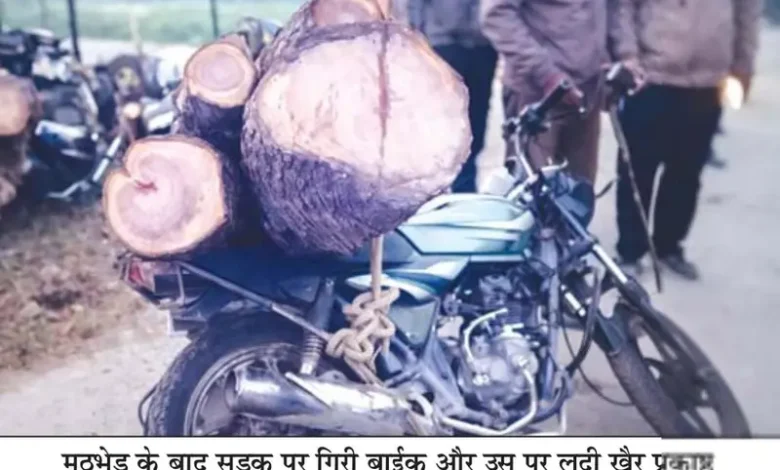 बाजपुर के जंगल में वन तस्करों से मुठभेड़, जवाबी फायरिंग में तस्कर फरार, खैर की लकड़ी और तीन बाइकें जब्त।