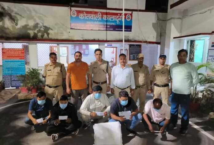 लालकुआं पुलिस ने जुए के अड्डे में छापा मारकर सात लोगों को गिरफ्तार किया। इनके पास से एक लाख रुपए से अधिक का कैश बरामद किया।