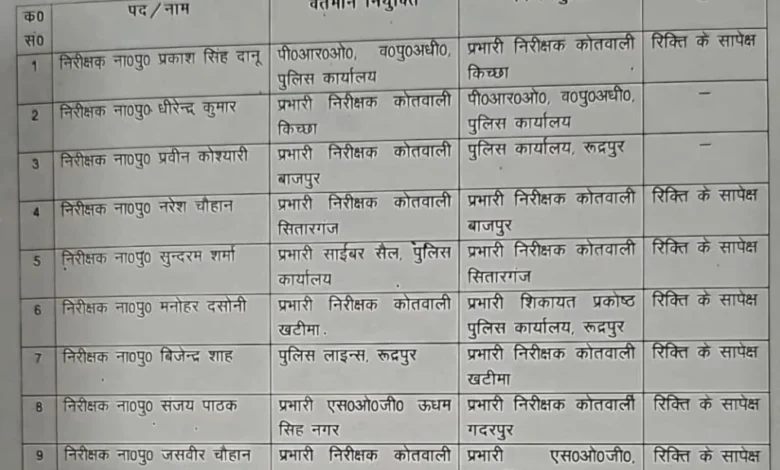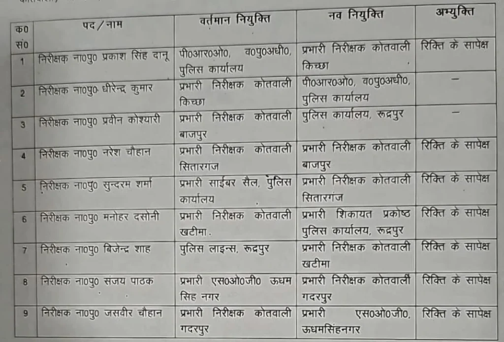 एसएसपी उधमसिंह नगर मणिकांत मिश्रा ने किए इंस्पेक्टर्स के तबादले