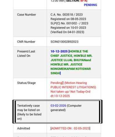 हल्द्वानी। सुप्रीम कोर्ट में बनभूलपुरा रेलवे भूमि प्रकरण की सुनवाई फिर से टल गई है। पूर्व में यह तिथि 16 दिसंबर तय थी, अब सुप्रीम कोर्ट की अधिकृत साइड में सनी की तारीख शीतकालीन अवकाश के बाद 3 फरवरी 2026 नई तारीख के आने से मामला कड़ाके की सर्दी के बीच और खिच गया है, अब 3 फरवरी यानी ठंड का प्रभाव कुछ काम हो जाएगा सुप्रीम कोर्ट में सनी की जानी फिक्स है।